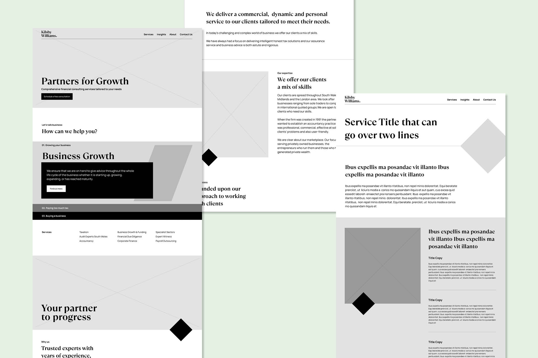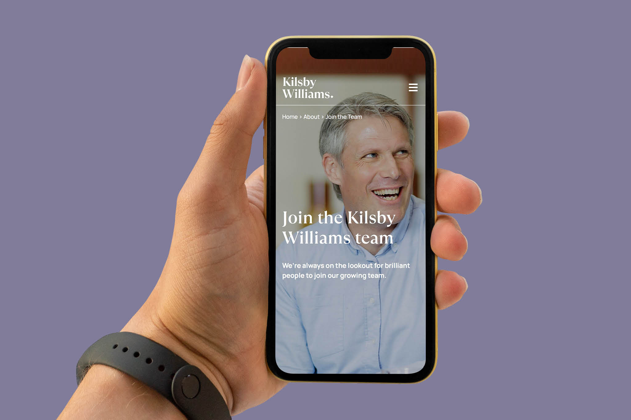 We went on to apply this new visual, redefining the Kilsby Williams’ web user experience. We created new wireframes, and developed responsive web designs, allowing the user experience across mobile, tablet and desktop to be optimised. The result was an engaging new website and a powerful client acquisition tool.